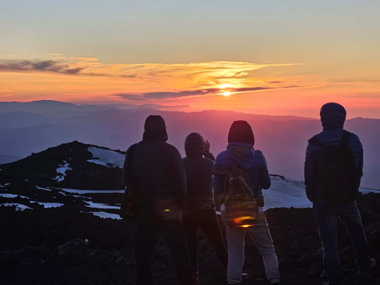 We did the sunset Etna tour in June 2024 guided by Antonio, making up a larger group of around 25-30 including some families and hiking club enthusiasts. The team did a marvellous job from start to finish. The 4-wheel vehicle was robust and driven excellently across challenging volcanic terrain. We wove our way up Etna stopping and exiting at key points to walk and see and hear about legacy craters, volcanic bombs, lava tubes, and as we approached the observatory smoke from the active summit. Sunset was spectacular and once it darkened we were then able to see distant some hit red lava which resembled a firework. The advice about taking layers was sound. We had several jumpers, long trousers and a scarf to cover our mouths as it’s quite windy and dirty towards the summit. Great value for money and the views are a once in a lifetime experience.